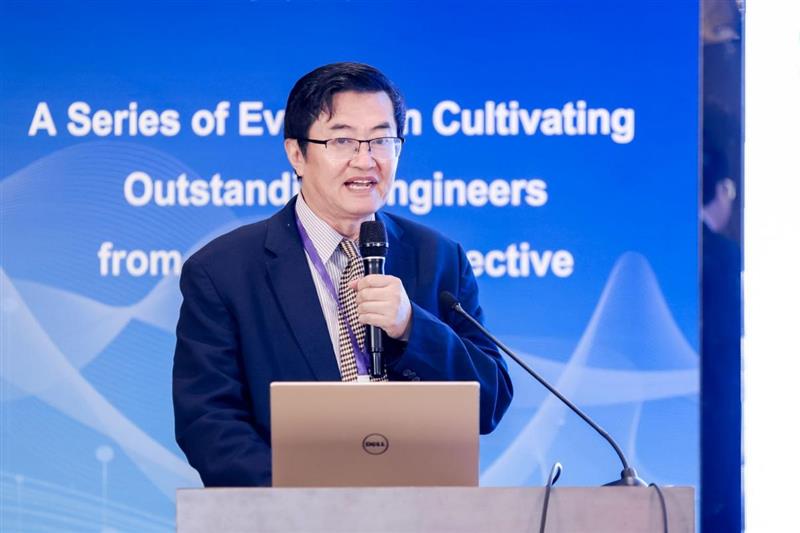 梁琼麟作了题为《肩负使命,加快培养卓越工程师》的报告。强调加快培养卓越工程师的重要性,并介绍清华大学工程教育的发展历程和产教融合育人新机制。他提到卓越工程师应具备深厚的知识基础、系统性解决问题的能力、工程技术创新性和领导力,以支持全球可持续发展和提升发展中国家的自主创新能力。