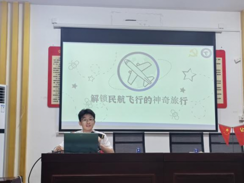 李硕在江山村,面向江山村党支部成员上了一节题为“百年党史沁民航,精神谱系传印记”的微党课,与民航的建立发展结合起来,解码中国共产党人的精神谱系。通过坚守初心使命,以“伟大建党精神”庚续红色血脉;坚持命运相连,以“两弹一星精神”铸就蓝色梦想;坚信苦难辉煌,以“伟大长征精神”驱散灰色阴霾;坚定守正创新,以“改革开放精神”打造金色名片四个方面,逐梦民航强国之路。