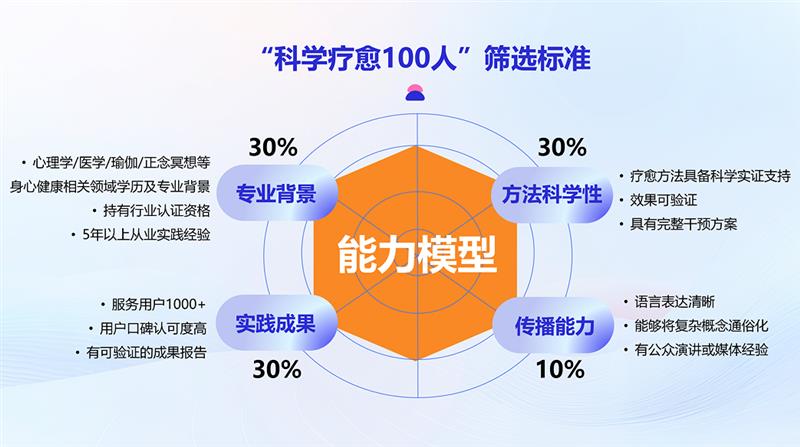 简知愈见坚信专业价值应该被市场看见,科学方法值得向更多人推广。项目将在全国范围内公开招募在身心健康疗愈领域具有专业背景、科学方法、实践成果和良好传播力的优秀从业者和专家。同时,项目采用严谨公正的评选流程,包括全国海选、资质筛选、专业能力评估,最终在2026年第二届中国身心健康与疗愈+大会现场正式发布《科学疗愈100人》官方名单。
