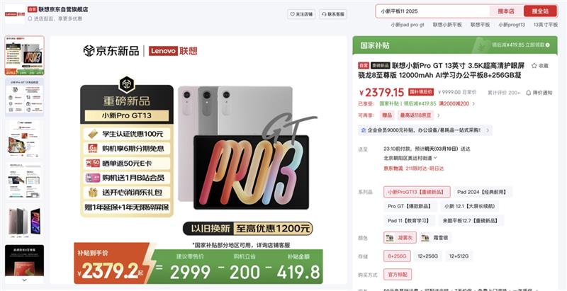 京东独家首发联想小新Pro GT 13 国补叠加以旧换新、学生优惠至高省1800元