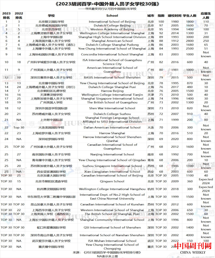 胡润发布中国国际化学校排行榜 西安梁家滩国际学校入围外籍人员子女学校30强