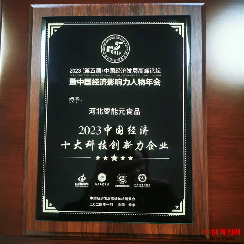 河北枣能元食品有限公司获评2023“中国经济十大科技创新力企业”年度大奖