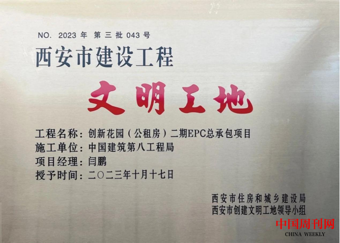 经开区创新花园(公租房)二期项目 荣获“西安市文明工地”称号