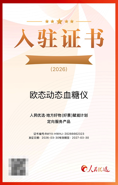 欧态动态血糖仪获人民优选认证:国产CGM走向国民健康新选择