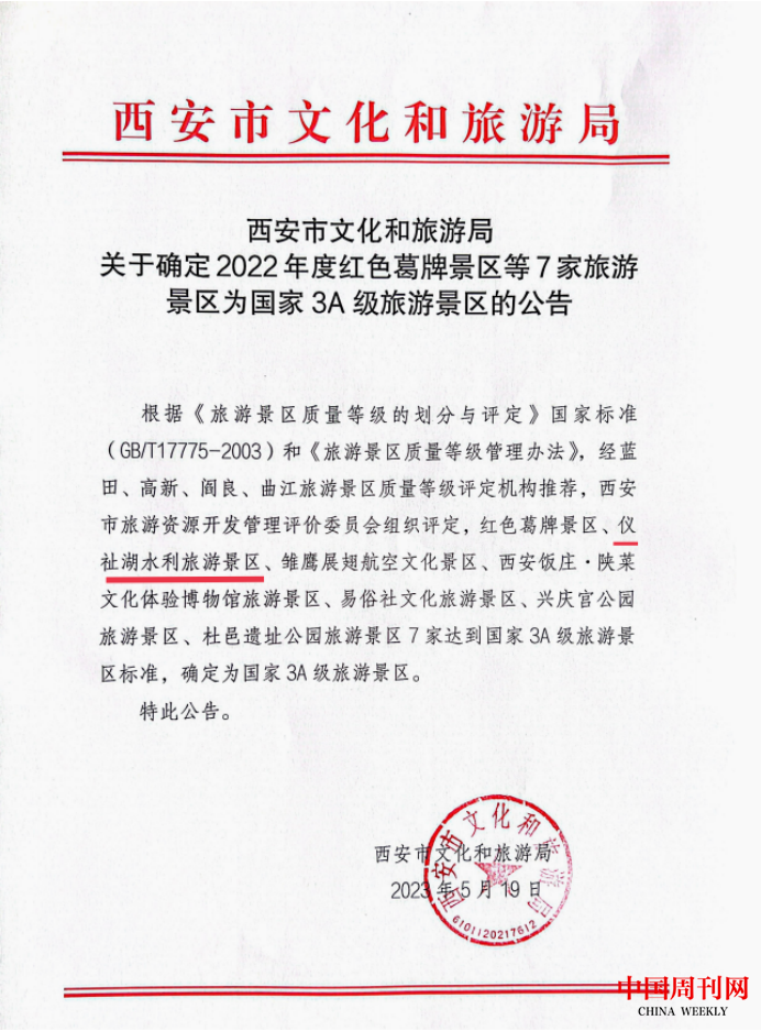 起好步 开新局 | 高新区仪祉湖水利旅游景区获批国家AAA级景区