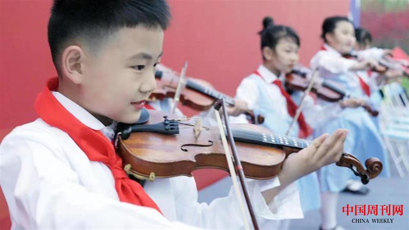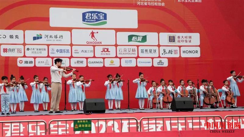 裕东小学教育集团“裕东•风之笛少年弦乐乐团”倾情演奏 助力2023石家庄马拉松赛!