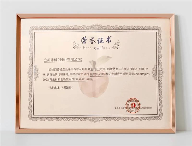 立邦加速绿色环保型包装创新,荣获ChinaReplas2022再生材料创新应用“金苹果”奖