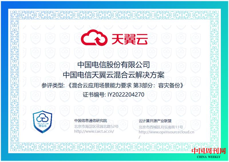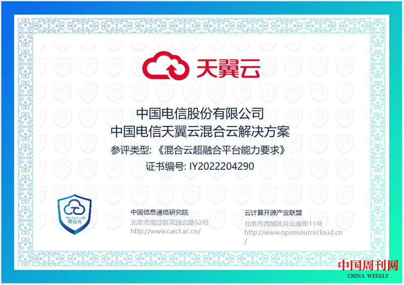 实力认可!天翼全栈混合云再获三项可信云评估
