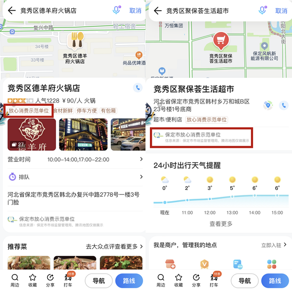 1900家保定市放心消费示范单位,用腾讯地图一键导航!