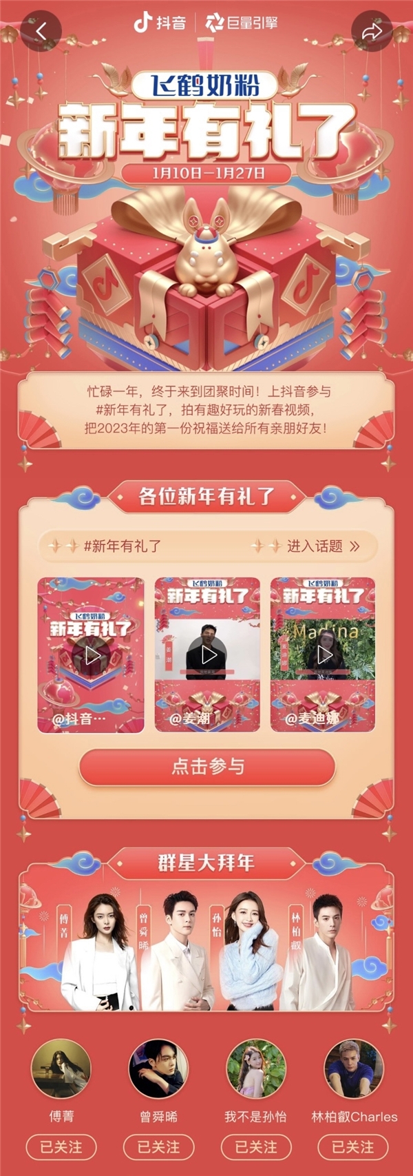 新年有礼了!巨量引擎X抖音娱乐X飞鹤奶粉「鲜萃活性营养宇宙」来袭!