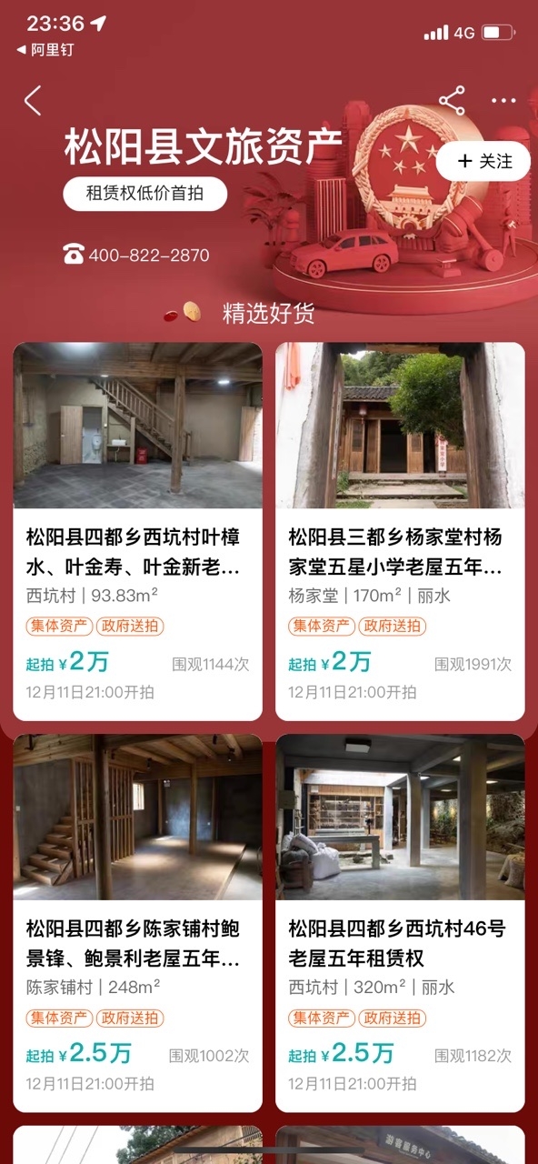 双12松阳县文旅局放大招 传统村落老屋5年租赁权2万元起拍