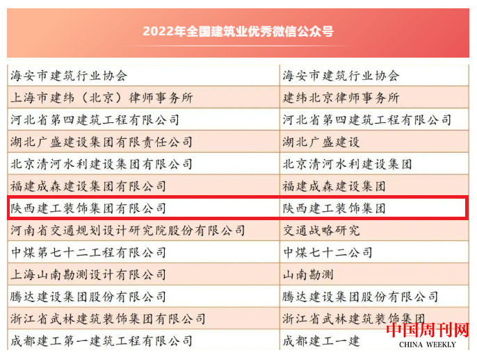 陕建装饰集团再获“全国建筑业优秀微信公众号”称号