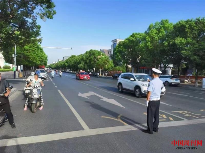 息县交警战高温斗酷暑,“汗”卫平安畅通