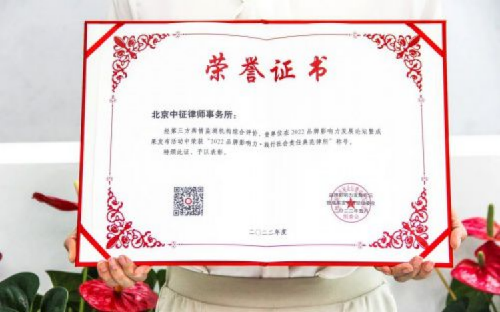 北京中征律师事务所荣获“2022品牌影响力”两项大奖