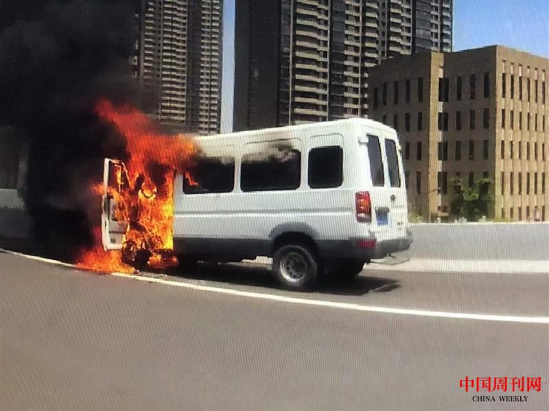 面包车突发自燃 民警消防紧急救援