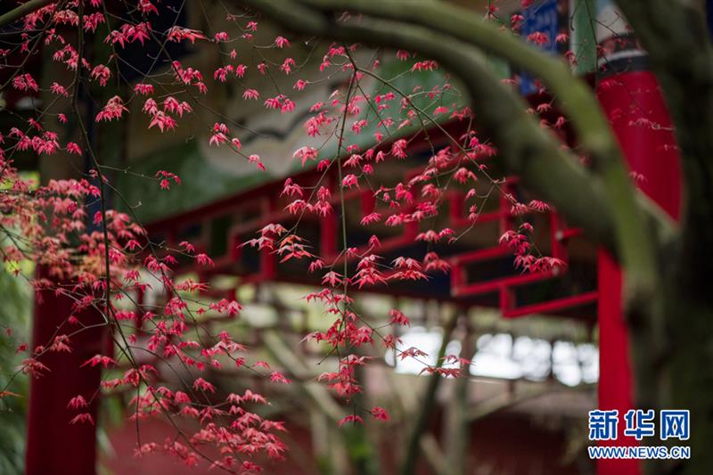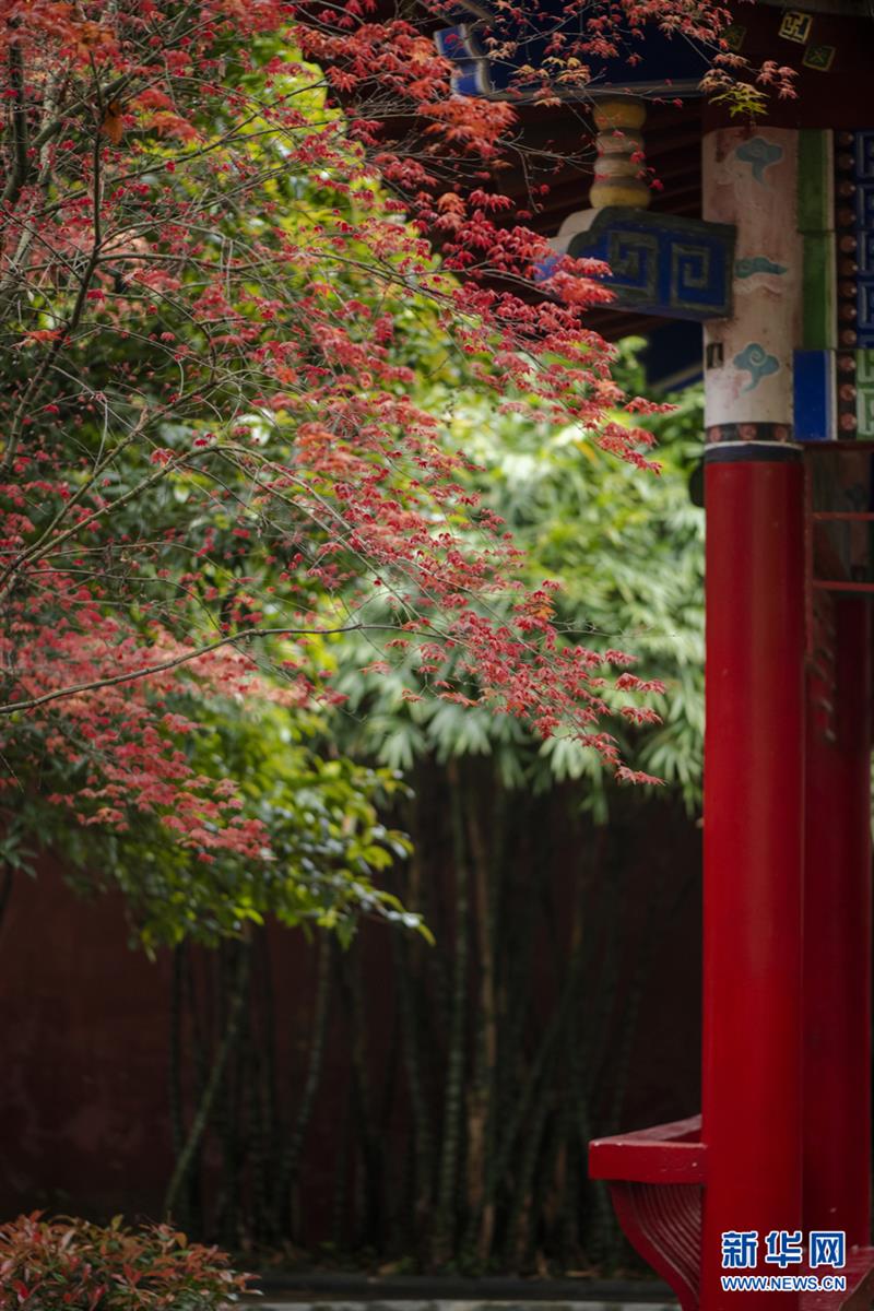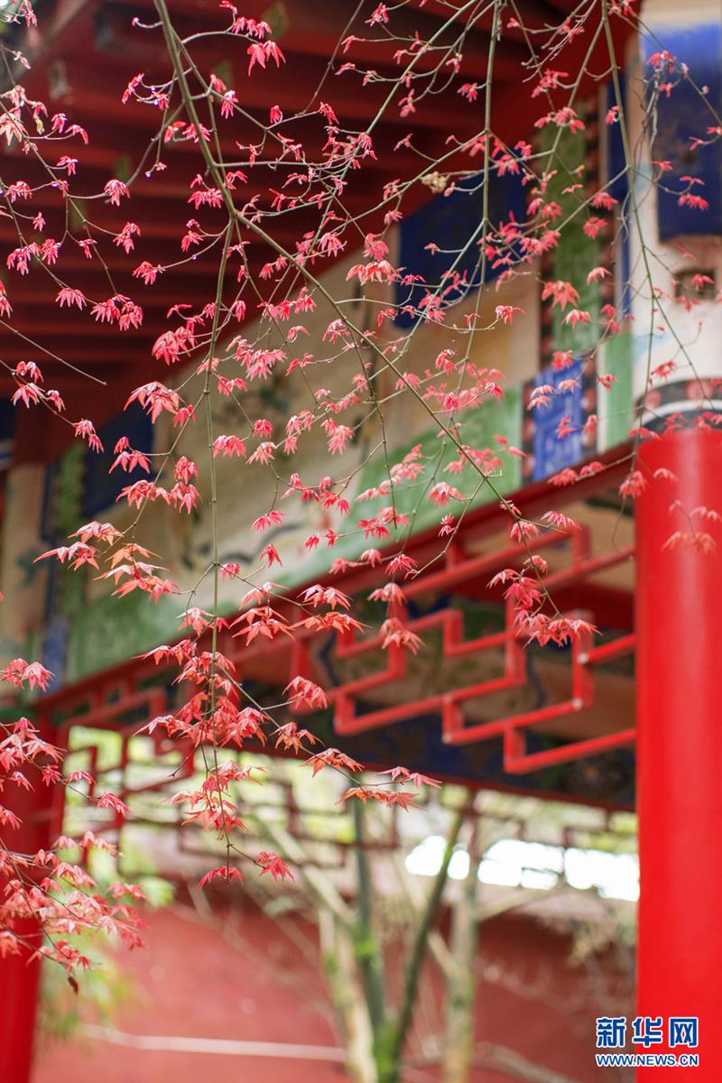 春天里,春风送暖,适宜的温度催红了广西桂林市全州县湘山寺内的“春红枫”,景区内的观赏枫树生长出红红的嫩叶,迎来上佳观赏期,成为春季一道特别的风景。
