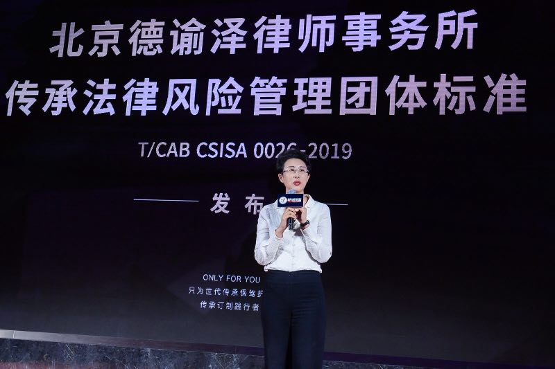 近日,由北京德谕泽律师事务所制定的传承法律风险管理团体标准(T/CAB CSISA 0026-2019)在胡润百富20周年年会上正式对外发布,德谕泽是作为第一起草人在风险管理领域、法律风险管理领域、传承法律风险管理领域制定标准的第一家律师事务所。