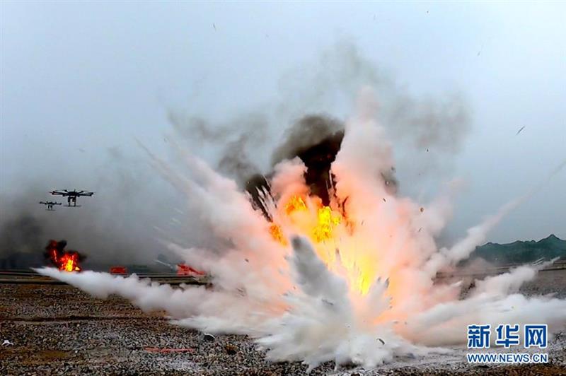 油料保障队组织参赛队员进行无人机灭火作业(12月1日视频截图)。新华社发(吕冀周 摄)