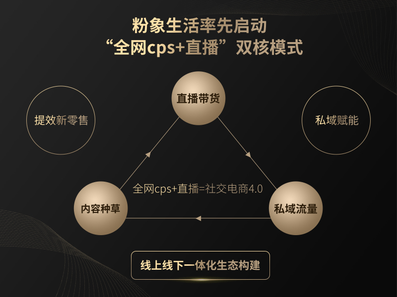 近日,国内知名的社交电商平台“粉象生活”正式入局直播赛道,平台战略也从“全网CPS+会员制社交电商”正式升级为“全网CPS+直播”。伴随着本次战略升级,由粉象生活引领的“全网CPS+直播”新模式也将整个社交电商行业带入了 4. 0时代。
