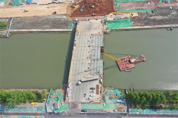 国际路跨外秦淮河钢箱梁桥提前圆满合拢