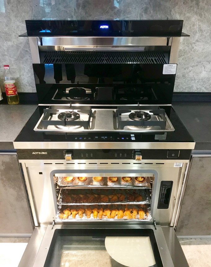 我选的这款油烟机,在灶台上面可以炒、炸、煎、煮;灶台下面70L大容量能够做到高温蒸、普通蒸、焙烤、风焙烤、发酵、解冻、烘干、保温八大智能烹饪模式随意切换;