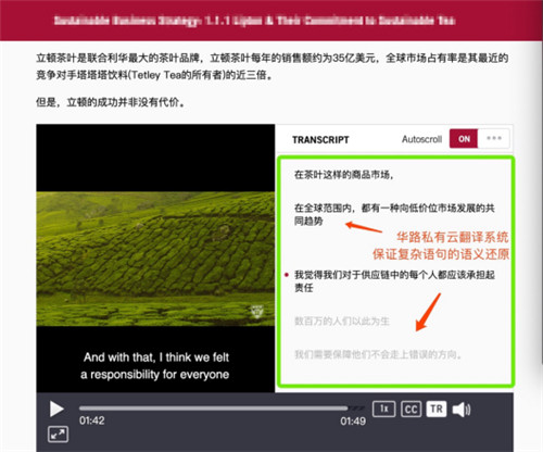 使用过程中,学生学习诸如哈佛大学、斯坦福大学、麻省理工、耶鲁大学、剑桥大学、牛津大学、清华大学、孔子学院等线上教学时显示,华路私有云翻译系统译成的中文/英文/法文/德文等均非常准确,特别能够把握课程的深度和整体内容,而不是受限在局部字面翻译,其准确率与同步速度直逼人工同传,学生仿佛沉浸在同声传译的教学环境当中。
