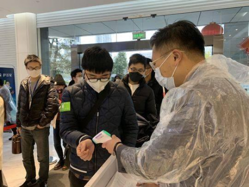 上车、进入大楼、进入办公室,体温监测环节一个不少,工作期间,办公场所内还会安排工作人员再次监测体温,确保每位员工温度正常。