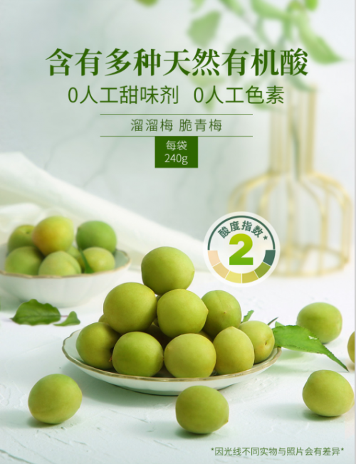 在零食行业,溜溜梅备受关注,“酸一点,吃溜溜梅”的广告语深入人心。溜溜梅的原材料为青梅,而青梅源于中国,拥有7000年的种植史和3000年的食药史,自古便是“药食同源”的健康水果。溜溜梅坚持以更优质的A级青梅为原料,不添加防腐剂和甜味剂,好吃又健康,一年热销20亿颗,如今已经跻身健康零食主流。