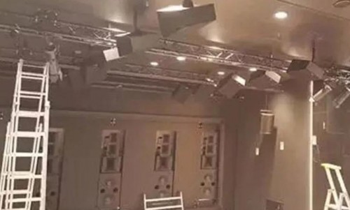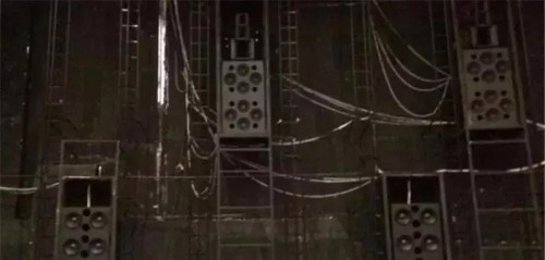 图片展示的是贝鲁特Vox 10银幕综合影院安装的Krix影院扬声器系统。其中一块银幕使用的是最新的杜比全景声61.3音频格式。在此格式下,影院的各个位置都会安装扬声器,包括后墙和天花板
