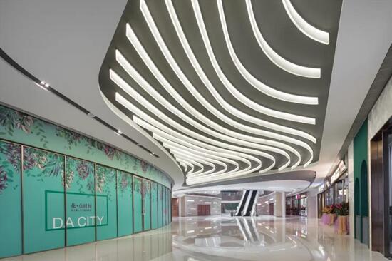通过大型艺术品产生话题以及凝聚力,另外中空边缘利用主中庭木纹铝板增加空间的一致性。 展示了中国当代关于建筑和自然完美融合的美好设想,也是当今的国际建筑的设计中发展趋势之一,侧证了建筑审美的变化。