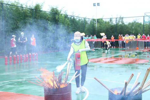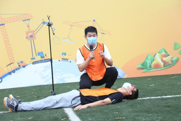 活动序幕在一片热烈的掌声中缓缓拉开,来自中建商砼基层厂站的5支代表队,分别以端午、端阳、重午、菖蒲、龙舟作为队伍名称,个个摩拳擦掌,跃跃欲试。活动第一个环节便是动真格的重头戏——安全应急趣味演练,面对熊熊燃烧的火焰,队员们没有一丝慌乱,迅速捂住口鼻,以低头弓腰姿势前进,准确快速的使用灭火器扑灭明火,将遇火灾逃生、灭火的要领铭记于心。接下来的端午安康趣味知识问答接力赛,在接力跑中穿插知识问答,队员们脑力、体力、团队协作力都得跟上节奏。再来的疫情防控趣味演练引得场上加油声不断,队员们快速地穿上防护服、口罩、手套、鞋套、面罩等装备,根据指令寻找所需防疫物资按要求送至目的地,体现了团队的协作能力和对防疫要求的反应能力。活动过程中还穿插了防溺水安全演练,结合端午节屈原投身汨罗江的事例,向大家现场演示了如遇溺水危险,如何施救与自救。最后,所有人员合作现场绘制安全生产巨画,为活动画上圆满的句号。