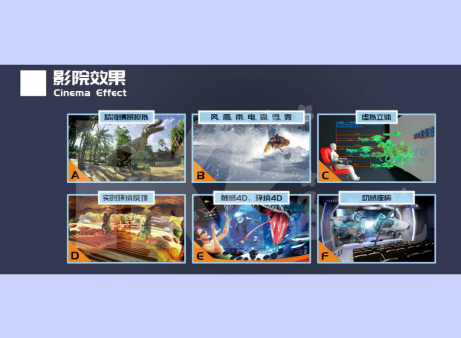 刮风模拟:模拟刮风。模拟影片场景中的刮风情景或者是大规模的气体流动。几台风机同时工作可使整个影院气流运动,产生真实刮风的效果。