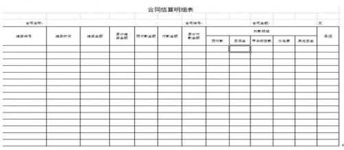 合同管理模块由合同评审表、中期结算表、结算明细表、合同管理台帐组成。