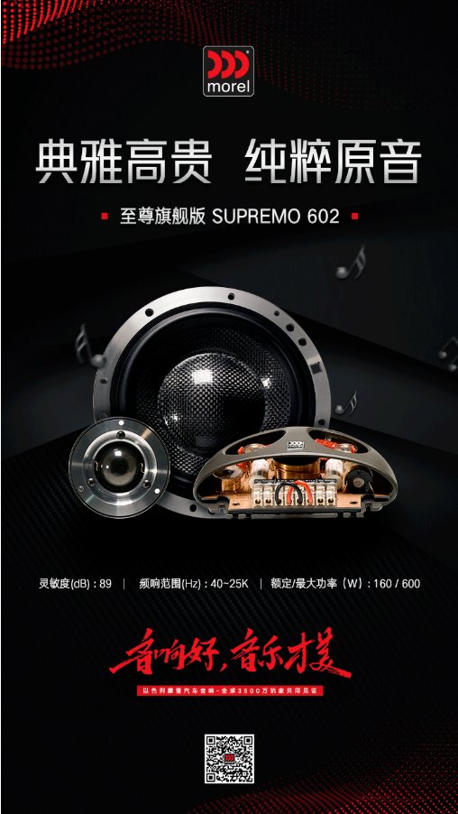 以色列Morel摩雷的经典名作——至尊旗舰版Supremo 602。它与家用音响旗舰系列的“胖夫人”属同工之作,代表着摩雷卓越的专业技术和精湛的工艺水准,他将汽车音响的音效表现提升到一个全新的水平。