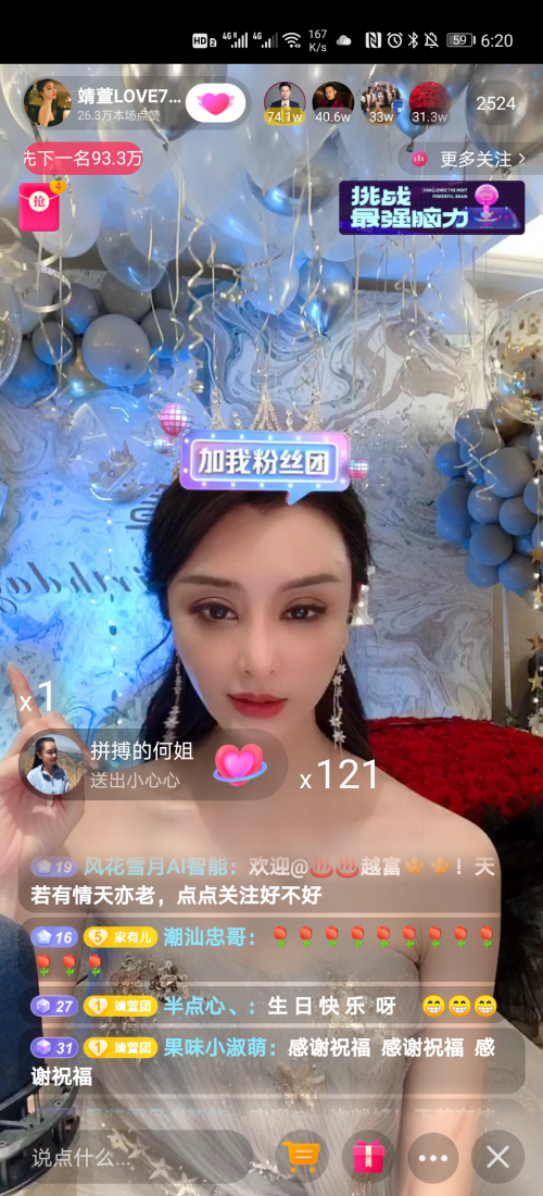 近日,无忧传媒旗下女神靖萱在抖音庆生的直播过程中,一举获得了来自忠哥,惠子,郭聪明,高火火,麻辣德子,大狼狗夫妇,牛哥,林先生,韩兆导演,利哥,马有才,笑神姜涛,死神方便,表哥,韩飞龙,刘金山,王延龙等几乎涵盖抖音全网头部主播送上的生日祝福,不仅收获千万音浪,抖音热度一路攀升并连续5小时稳居抖音小时排行榜第1名。就连在众多观看直播的粉丝的瞩目下,刷了20支抖音一号仍上不了礼物榜的抖音头部主播忠哥都不禁发出感叹“我刷了20个抖音一号,怎么还上不了榜啊!”,可见靖萱的直播间人气实在太高!同时,另一抖音头部主播惠子也在直播间以持续为靖萱刷嘉年华礼物的方式送上自己的祝福。