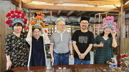 (图:部分文学大咖体验卫城文化客厅内头饰)