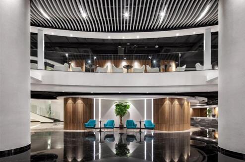 用细节打造亮点的阳光芸VIP服务中心,以经典的黑白简约风格贯穿了整个空间,然后在挑高的格局上采用了透明的旋转玻璃扶手,通过这样的组合,拓展空间的视觉尺度感,巧妙地利用了向心聚焦的围合手法,兼具特色和功能之间的互融互补。