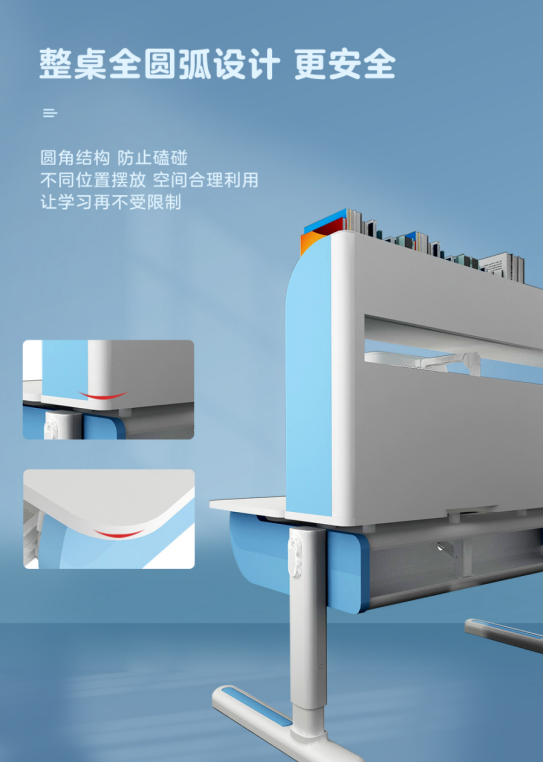 同时享学少年扬帆系列,对桌面桌面倾斜板调节开口进行了全新的升级,由以往的居中变为靠左设计,直接左手单手调节,无需放下手中的笔,让学习切换更连贯。