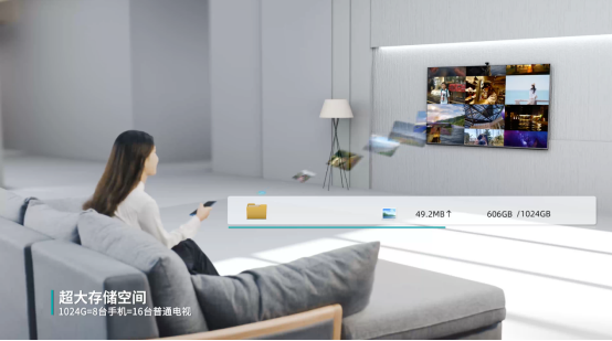 除了算力,新一代社交电视还针对存储空间的痛点进行了突破,首次创造性地将NAS和大屏相结合,标配1TB的私有云空间。同时,依托海信在云存储、云计算上的技术积累,通过自主研发的Hi Drop数据传输与同步方式,打通手机、电脑、电视等设备间的屏障,实现数据的无缝流转。