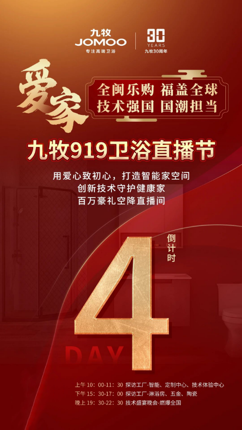 数字经济成为现下推动经济高质量发展的重要引擎,九牧抓住产业数字化时代机遇,继815全球卫浴直播节撬动私域流量蓝海后,继续发挥闽商“智拼善赢”的精神,将在919卫浴直播节携手特步、三棵树和华祥苑为代表的优秀闽商品牌,开展史无前例的私域流量联盟互动,创造数字美好生活,带动产业创新发展。