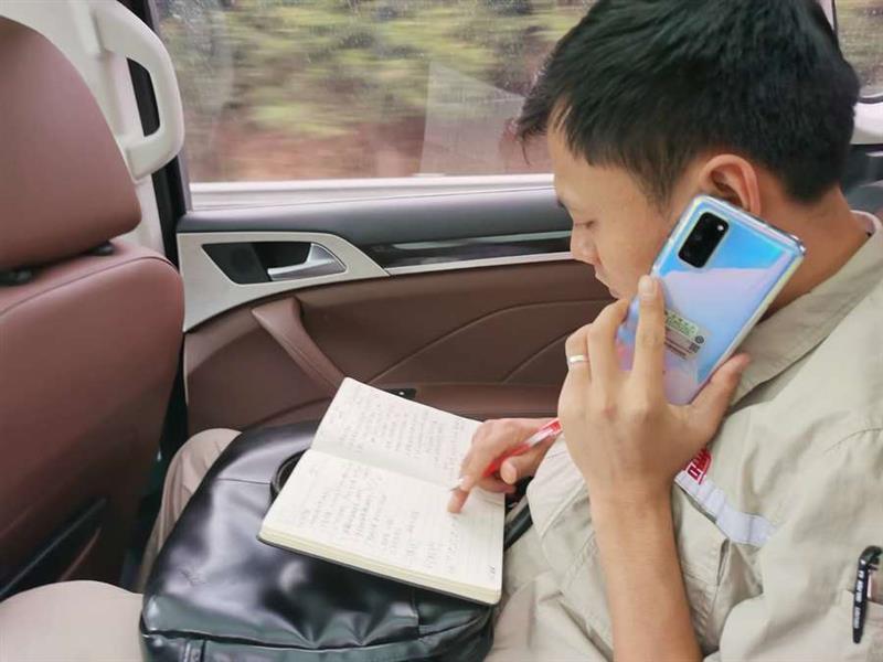 13:40,在车上,我本以为中午没有休息的他会借此机会睡一下,但一个接一个的电话让陈本焰根本没有思考休息的时间。