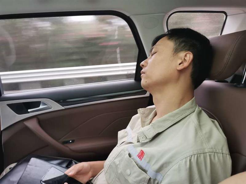 16:40,启程赶回公司,也许是一天的工作大半已经完成,紧绷的神经终于松了下来,在回程的途中,本焰歪歪地倚在车门上,睡了过去。