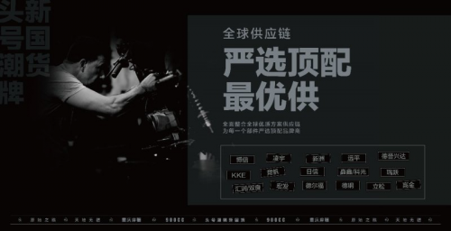 我要从全球供应链严选顶配最优供,以性能最优解、质量最过硬、运营最效率为目标,全面整合全球优质方案供应链,与行业头号企业达成头号合作伙伴关系,如高金、德尔福、新洲、日信、KKE、博信、马牌HTD、FCC、NISSIN、凯迩必拓普等,为每一个部件严选顶配供应商。