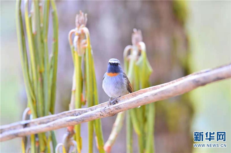 橙胸姬鹟。新华网发(李树靖4月8日摄)