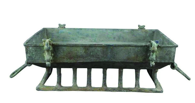 到商周时期,随着生产力的进步和生产资料的丰富,烧烤的方法也开始升级,烤肉有了专门的称法“炙”,《礼记》记载:“炙,贯之火上也。”也就是把肉串起来放在火上烧。不过那时候的烧烤是贵族专供,也是祭祀用品,比如在战国早期的曾侯乙墓中,曾出土过一件烧烤器,由上盘下炉组成,炉作浅盘形,敞口平底,下有三足,出土时炉内尚有十几块未烧过的木炭,曾侯乙的日常菜谱中多半也有烤肉这么一道菜。