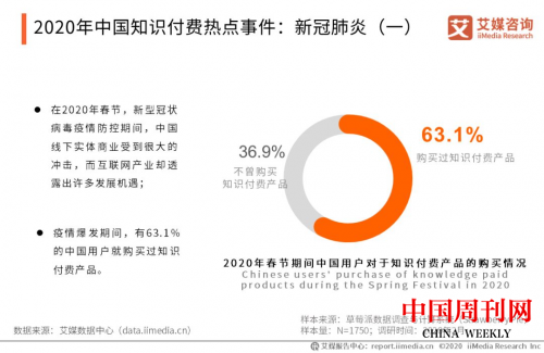 受疫情影响,复工复学时间推迟,然而“停课/工不停学”,在取消线下课程的同时,各机构纷纷提供线上课程,预计2020年中国在线教育用户规模将达到3.2亿。并且,据统计,仅在年初我国已有63.1%的线上用户购买了知识付费产品,2019年中国知识付费市场规模达到278.0亿元,预计2020年将突破392亿元。