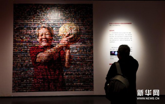 12月6日,参观者在第四届中国图片大赛典藏作品展上拍摄获得簕杜鹃特别奖的作品“大庆3100张脱贫户笑脸绽放幸福画卷”。新华社记者 毛思倩 摄