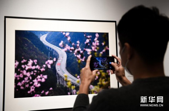 12月6日,在第四届中国图片大赛典藏作品展上,参观者在“新华社记者镜观脱贫攻坚决胜小康”展上拍摄作品。新华社记者 毛思倩 摄