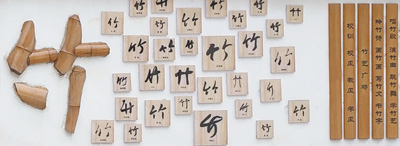 学校是村寨社区的重要组成部分,将所在地区的人文资源融入校园文化建设,是让学生切身感受地域文化,提升其文化认同感与自信心的可行之道。湖南省永州市双牌县蔡里口中心小学,坐落于茫茫竹海之中,竹编在当地已有上千年历史。应学校之邀,艺术家与湖南第一师范学院师生一同来到这里,围绕“竹文化”主题展开校园文化设计。设计后的校园中,竹简沿校门两侧展开,记载着学校简介、校园文化释义;一座集传统木结构民居与竹编技艺特点为一体的非遗竹艺坊,以竹编之美,开启智慧之门。艺术家还通过线上征集的方式,邀请1000名来自不同国家、不同民族的少年儿童,书写传统国学读本《千字文》,并计划将其以集字形式呈现于校内墙壁上。