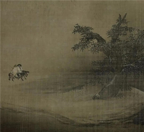 《寒林骑驴图》局部
